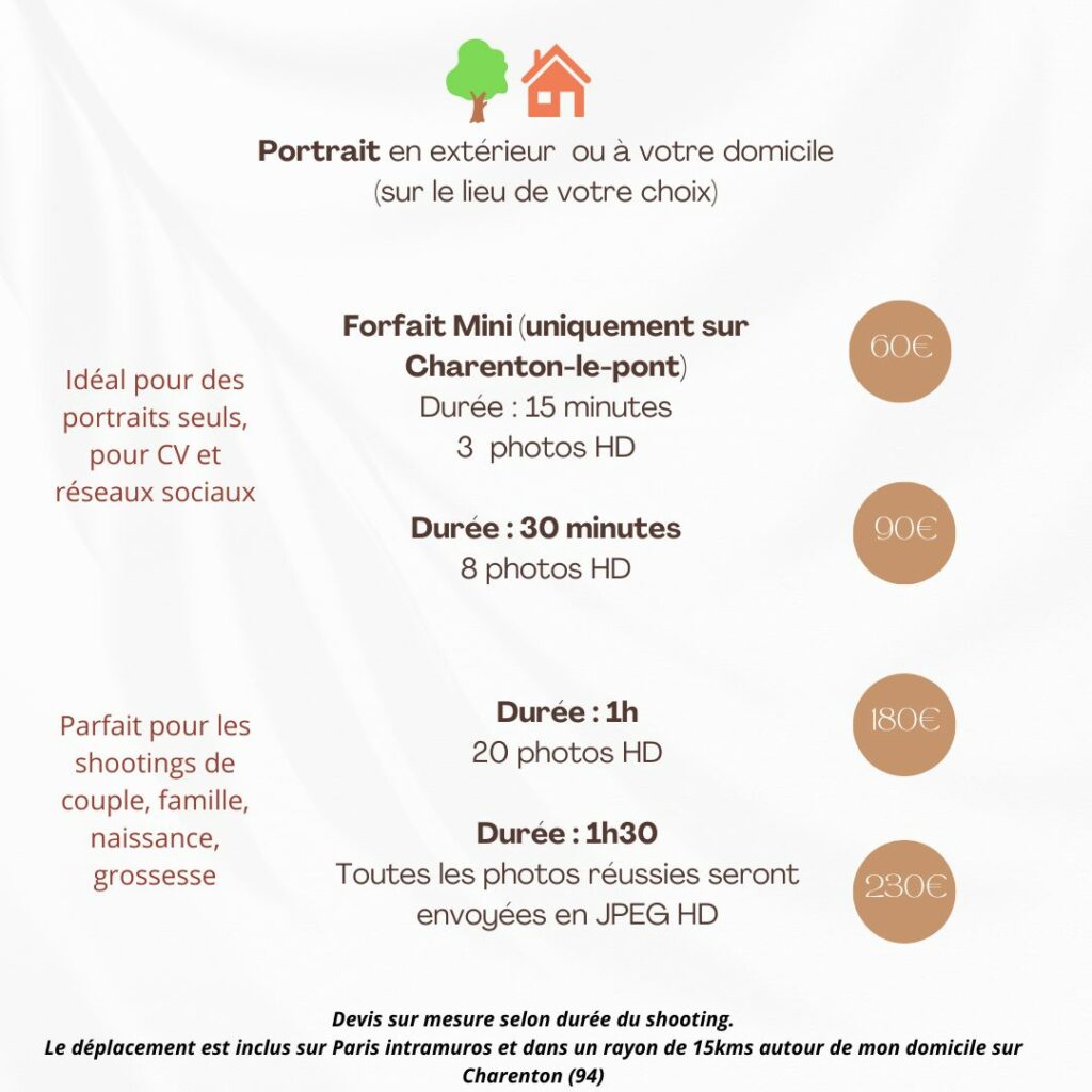 Shooting sur mesure possible en fonction de la durée de la séance, du nombre de lieux pour les photos, du nombre de photos souhaitées.